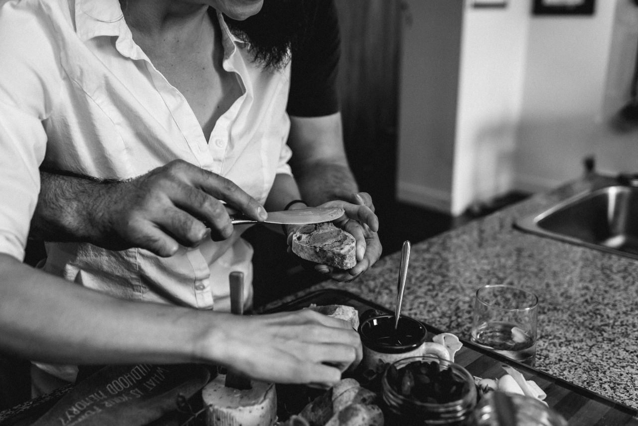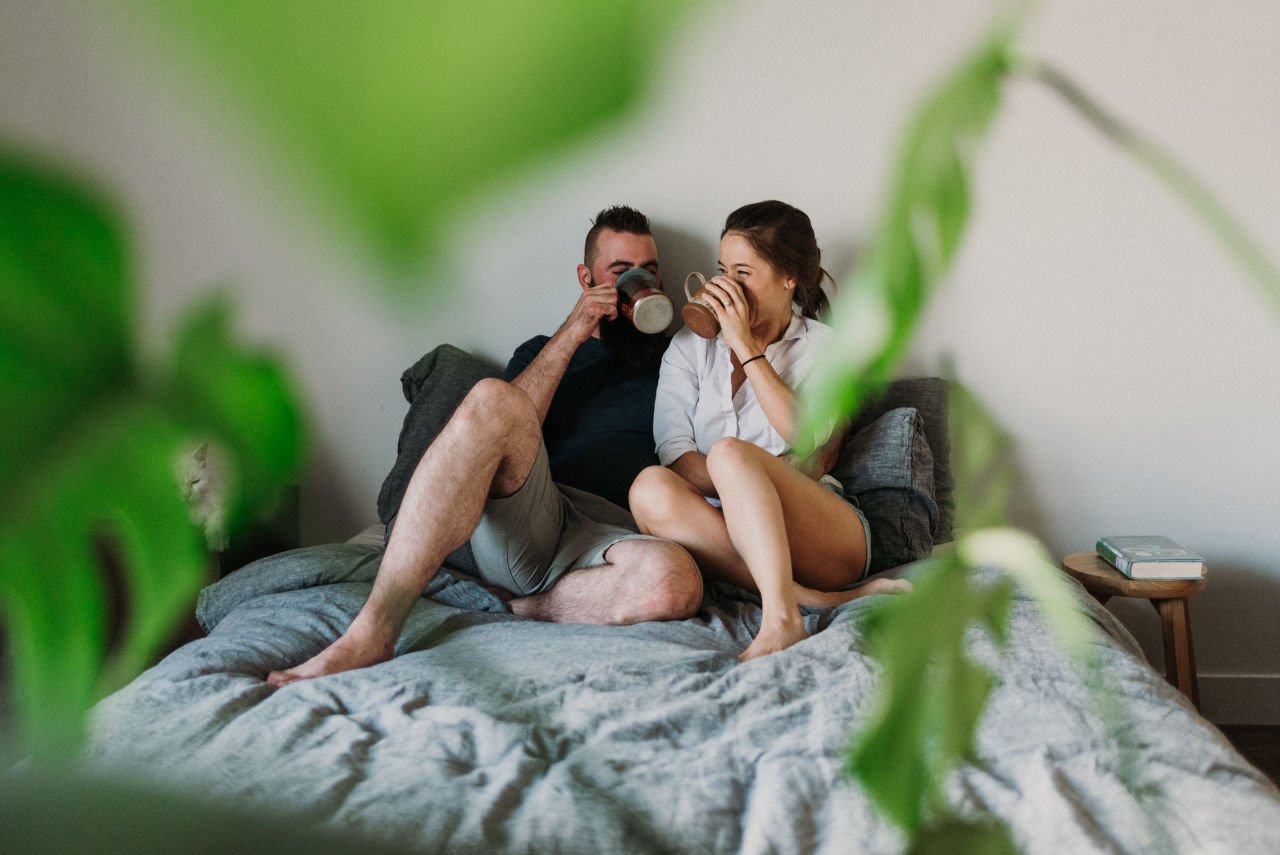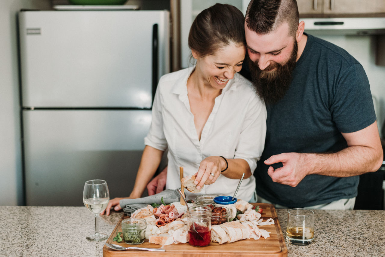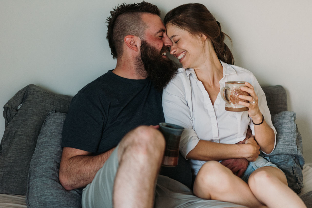 When it came time to plan Dominique & Mike’s engagement session, they suggested doing it at home. This is something we don’t do often as most people chose outdoor settings with nature elements. Home engagement sessions are a fantastic way of personalizing your photos to have more meaning. Doing things you love together in a comfortable setting that brings out who you are together.