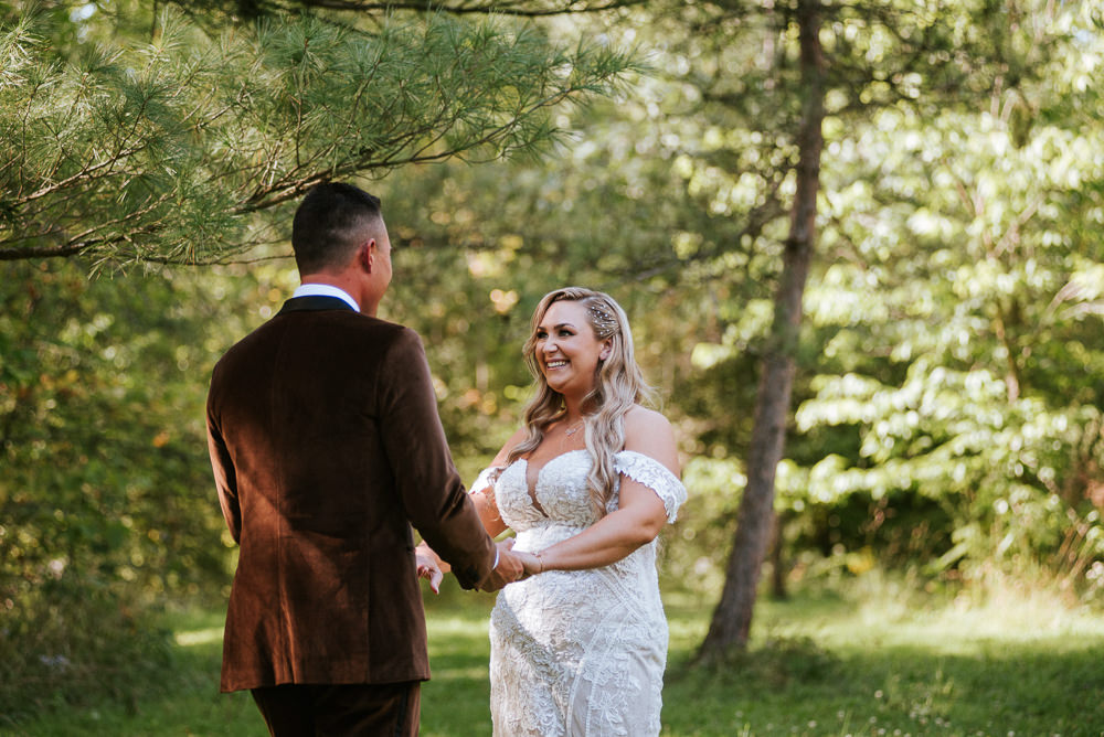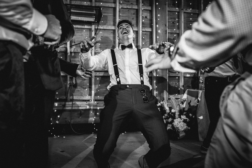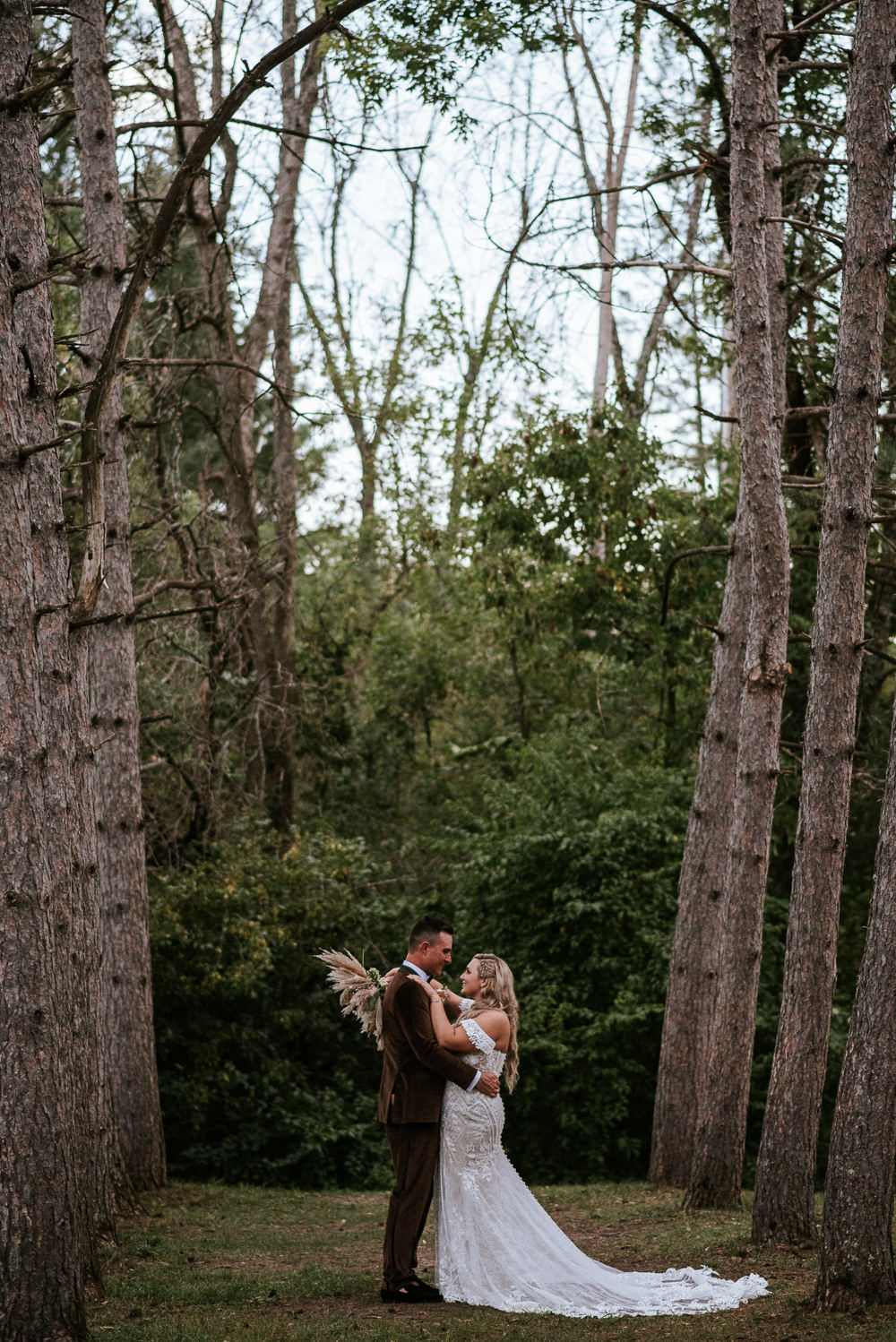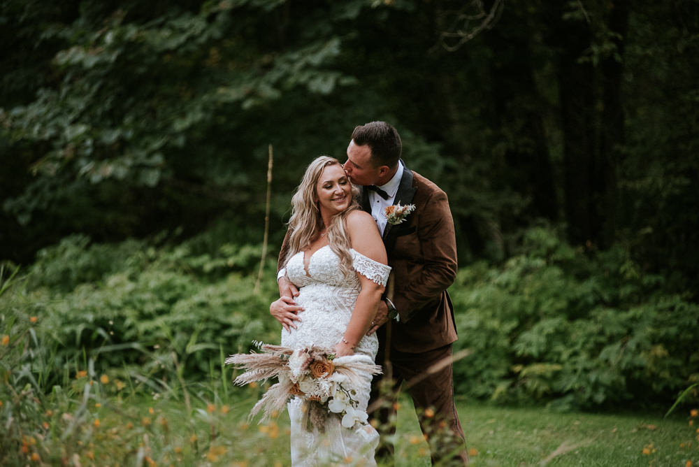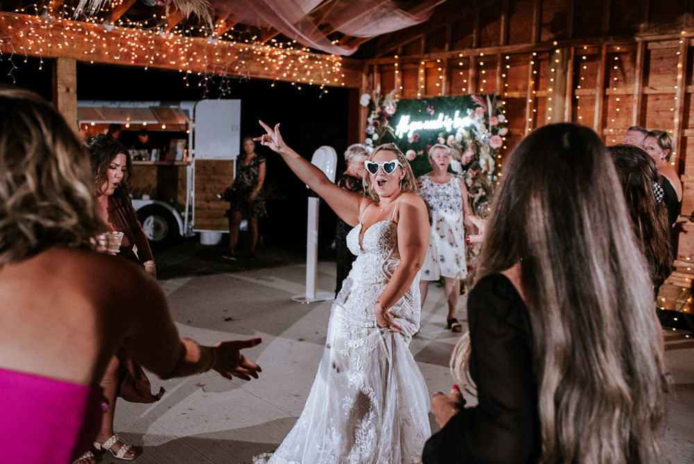 The reception was a celebration of love, laughter, and the joy of togetherness. Long wooden tables were adorned with rustic centerpieces, and fairy lights danced above, creating an enchanting ambiance. As the sun dipped below the horizon and the looking storm clouds in sight, the twinkling lights and the rustic surroundings merged to form a picture-perfect scene. It was the calm before the storm however, as the heavy clouds began to stream in.
