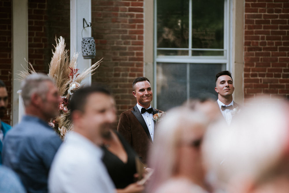 Tucker House, an idyllic haven with its rustic charm and natural beauty, set the stage for Fanny and Antoine’s wedding. Surrounded by lush gardens, towering trees, and the warm embrace of nature, the venue exuded an intimate and welcoming atmosphere. The weathered barn wood and vintage accents added to the rustic elegance, creating a fairy tale-like setting for their special day.