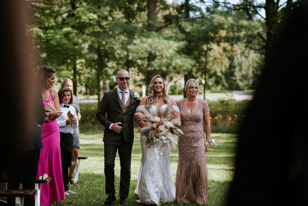 Every detail of Fanny and Antoine’s rustic wedding was a reflection of their love story. From the burlap and lace decorations that adorned the ceremony area to the handcrafted wooden signs that guided guests, each element was carefully chosen to encapsulate their journey. The color palette, inspired by nature’s palette, brought a sense of organic beauty to the celebration, creating a cohesive and captivating aesthetic.