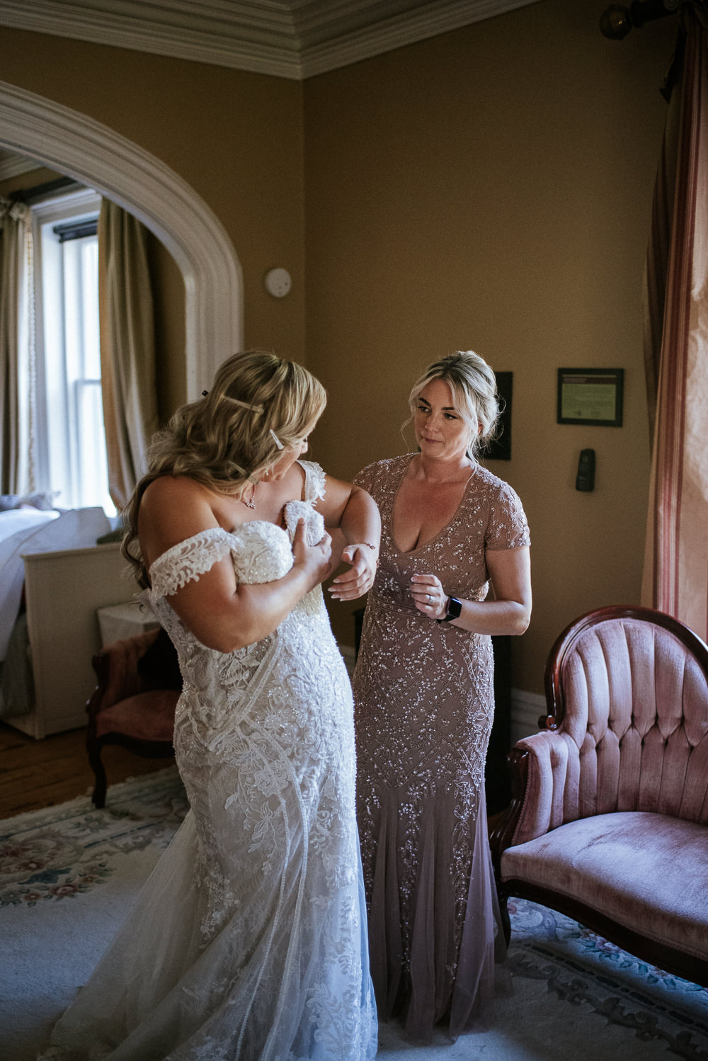 The outdoor ceremony was a vision of romance and simplicity. Against the backdrop of majestic trees and a gentle breeze and Tucker house itself, Fanny and Antoine exchanged their vows under an arch adorned with delicate blooms. The rustling leaves and soft sunlight created an ethereal atmosphere, where promises were made and dreams took flight. It was a true honor to immortalize these moments and, turning them into a visual narrative of love.
